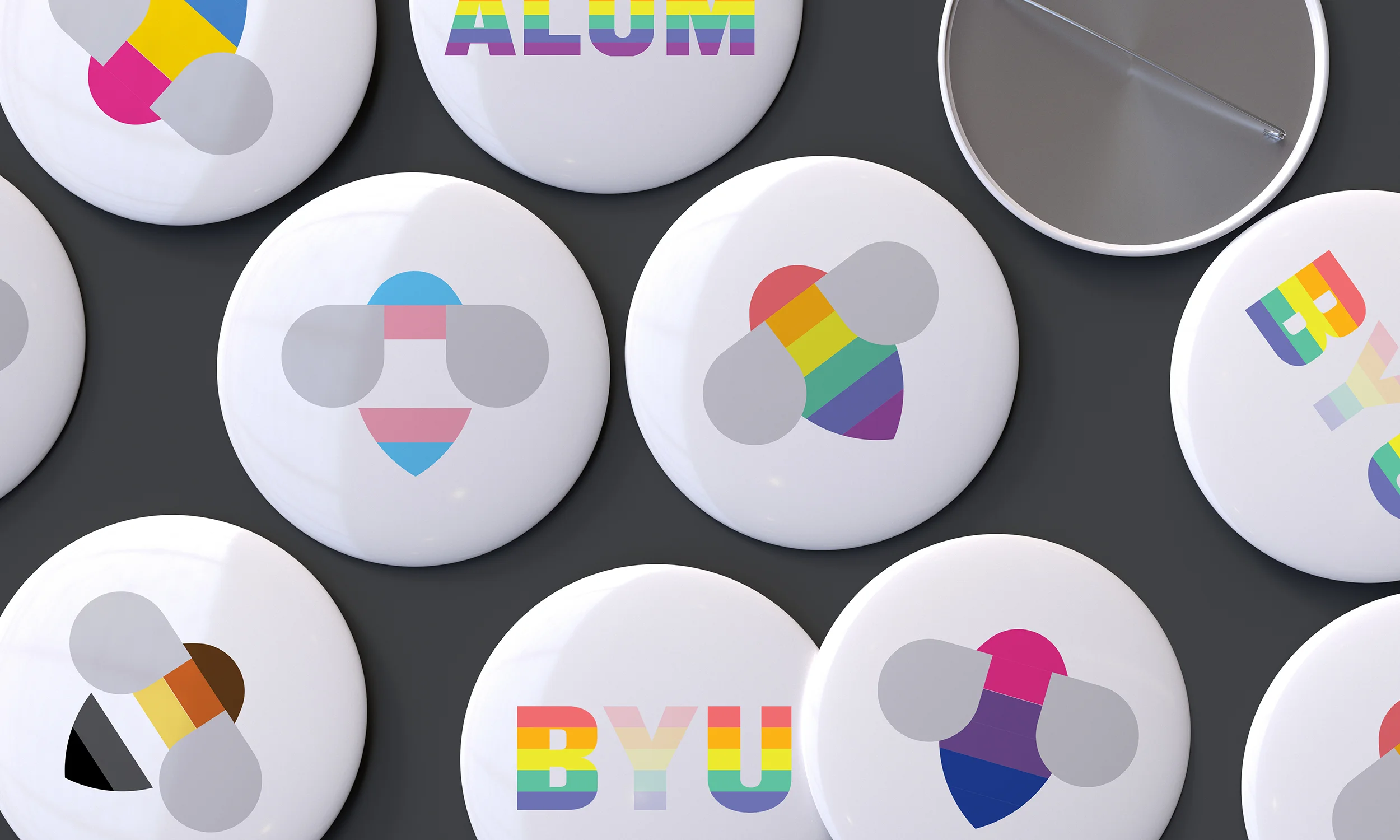 The main icon is a play on the Mormon symbol of the bee representing a small group/hive working together toward a common goal. The bee’s stripes change to match the different flags of the LGBTQ+ community. Other visual metaphors of such as hives, honeycombs, etc., inform the collateral design.
